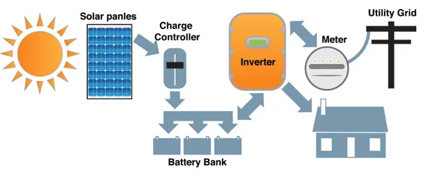 Being off-grid means you are not connected in any way to your grid’s power system or utility company. This is appealing because you are 100% self-sustaining your energy use. However, there are disadvantages because off-grid systems require you to purchase back-up battery which can be expensive, bulky, and not very environmentally friendly which defeats the purpose of going solar (save money and live greener). RV Solar kits are a grid example of off grid solar.