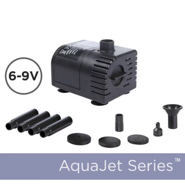 AquaJet series replacement 6-9V brushless solar water pump. If you are looking for complete solar pump kits, scroll below to view the project gallery where you can get ideas for different solar water feature projects.