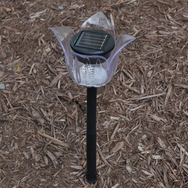 Our Solar Tulip Flower Light is a solid light which is made from extremely durable materials. The petals of the Solar Tulip Flower Light cradle the powerful state-of-the-art solar cell. This light looks great during the day among the living flowers in your garden then when the sun goes down the real show begins with this ground stake light.