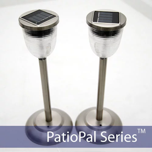 Illuminate your outside table setting with these two solar powered lights. These durable stainless steel fixtures feature two super bright LEDs. They are a great choice for illuminating your walkway driveway garden or patio areas without any wiring. These lights will automatically turn on in low light and turn back off when it gets brighter outside again.