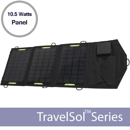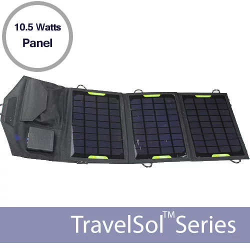 The TravelSol Plus combines 3 solar panels which is 10 .5 watts in total. The TravelSol Plus comes with a 2500mAH lithium battery which allows you to charge you devices even there is no sunlight available or at nighttime.
