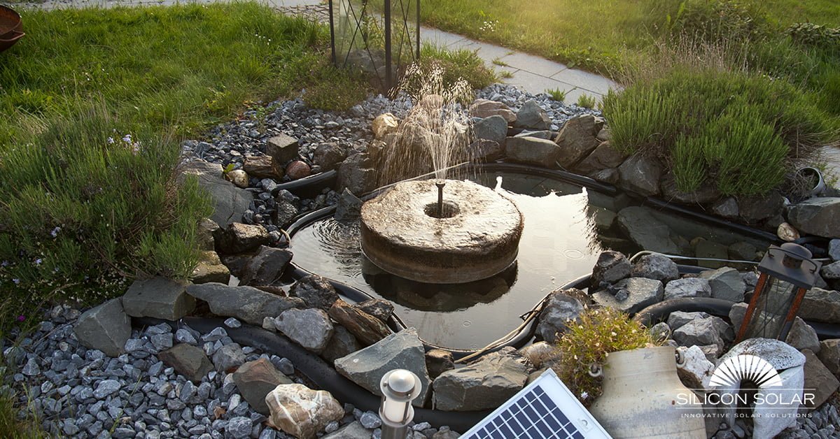 The AquaJet Pro 9V night and day solar pump kit keeps the water moving in this small backyard pond. Simple and effective.
